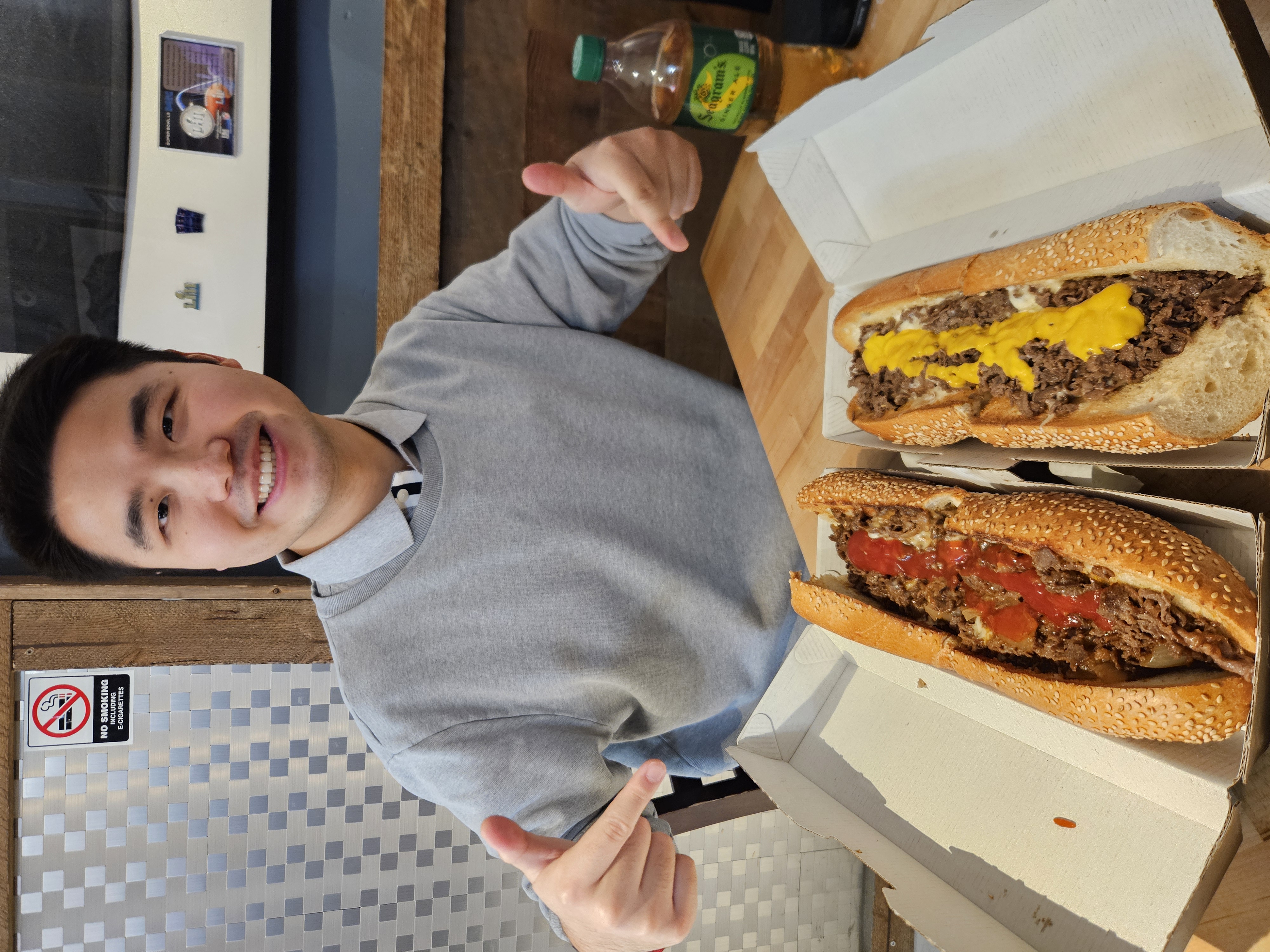 and enjoying a Philly cheesesteak